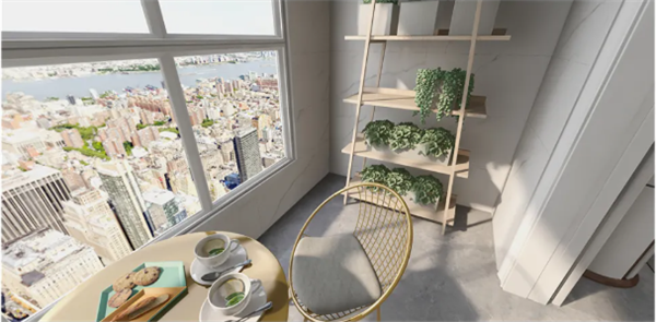 将客厅的阳台打通,增加了日常活动的位置,功能阳台放上休憩的桌椅,拉上窗帘,马上转换成迎面阳光,暖心的私密”办公or休闲”区。